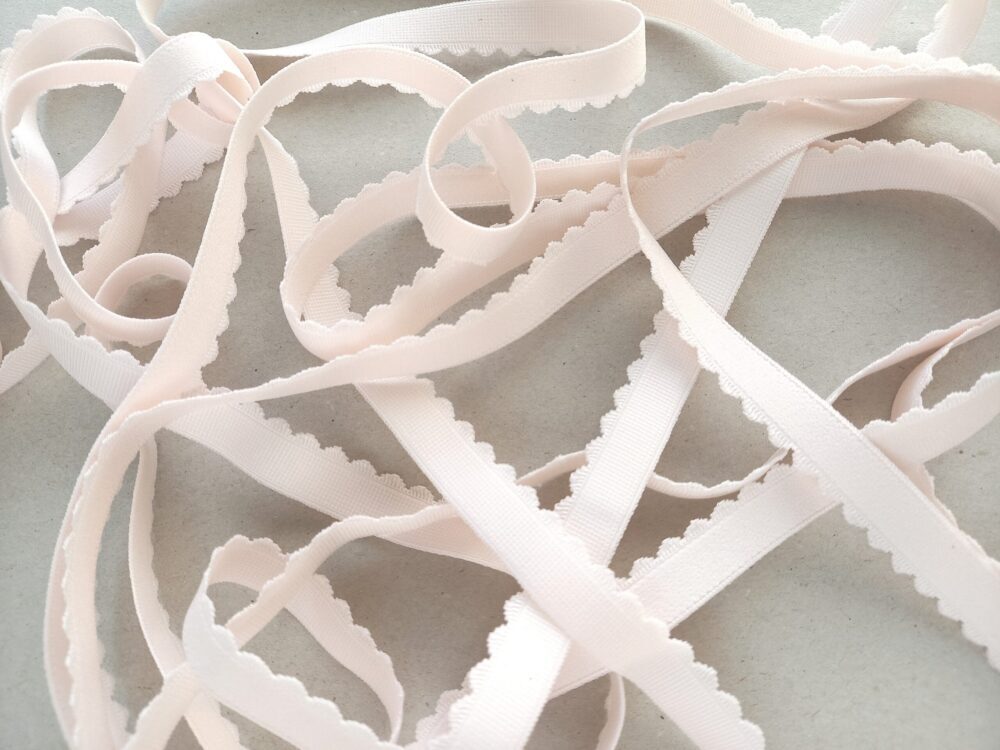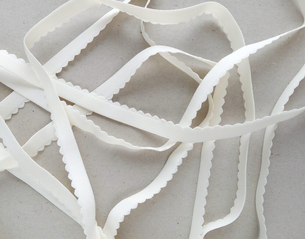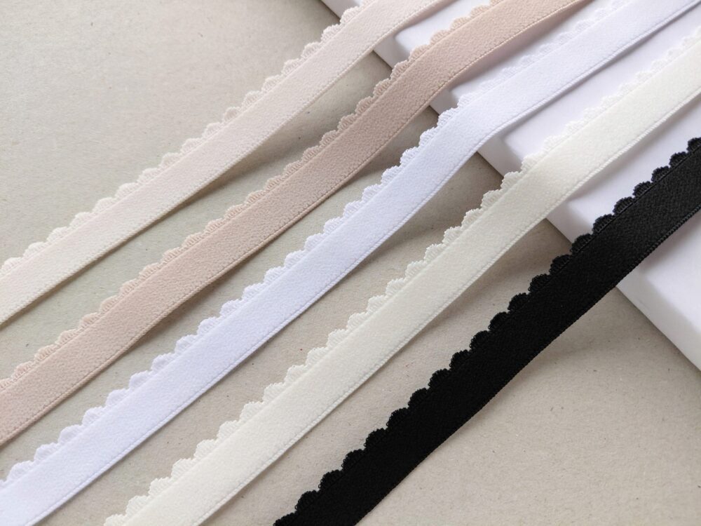 This scalloped edge elastic is available in a range of multiple colors. One side has a ribbed woven texture while the reverse is plush and soft against the skin for ultimate comfort.